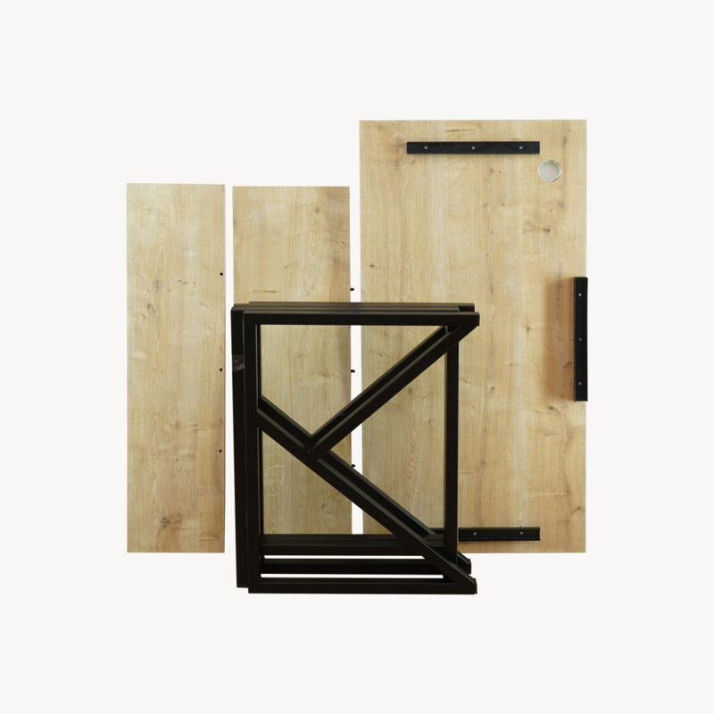Crux Klapptisch bietet ein innovatives Design und Eleganz für verschiedene Räume. Dicke Tischplatte und untere Ablage in Naturoptik aus hochwertigem MDF garantieren nicht nur eine funktionale Nutzung, sondern auch eine lange Lebensdauer.